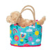 Rain or shine, any day can be a happy day if you make it so! This Happy Day Sassy Pet Sak features a vibrant print of sunshines, rain clouds, flowers, and rainbows against a bright blue background. The bottom of the bag has been trimmed in hot pink pom poms and the two handles have been fashioned from woven cord in a natural color. A plush Golden Retriever tucks snugly within the bag so that every adventure can be shared.