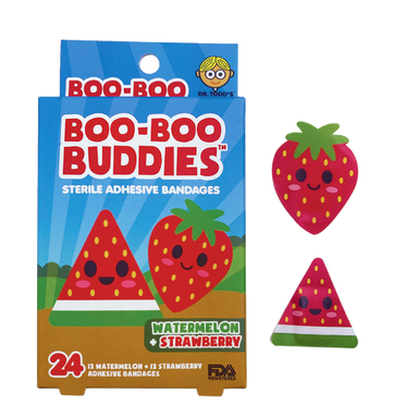 These fun bandages are sure to make any boo boo feel better! 12 of each design included. Individually wrapped.